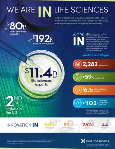 “Indiana’s life sciences sector provides large investments in jobs, facilities, and innovation – all of which contribute significantly to the state’s public and economic health,” said Patty Martin, president and CEO of BioCrossroads.